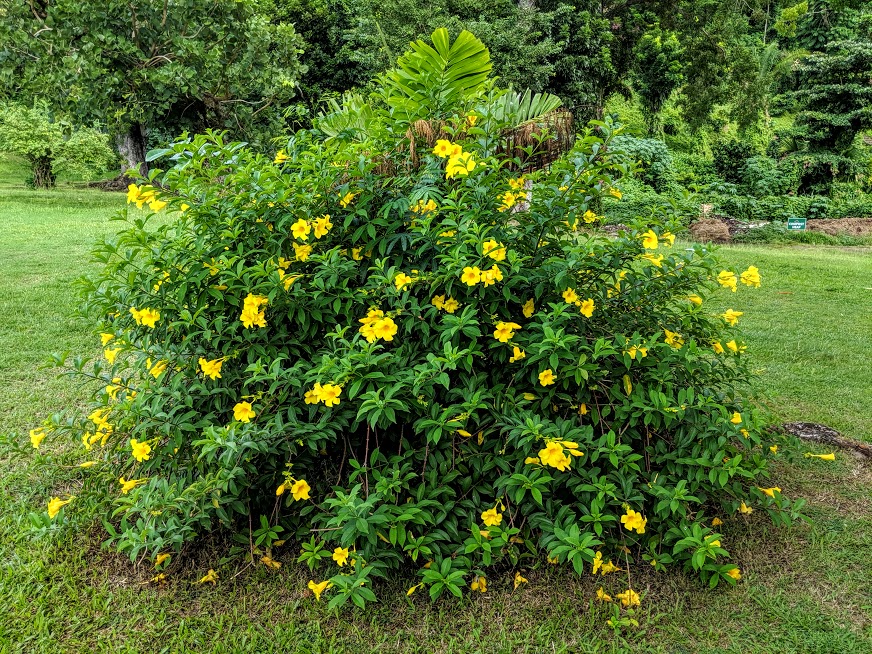 Botanical Garden’s yellow bell flower and an African Baobab tree, nicknamed “Goliath,” was felled by Hurricane “David” in 1979 and has kept on growing all these years. It landed on a school bus which, thankfully, was empty at the time.