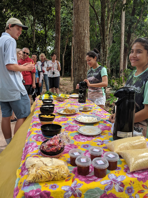 At the Casa de Farinha, an old cassava flour mill, we learned how latex is extracted and how the cassava root plant is peeled, shredded and squeezed dry, heated and somehow tapioca is extracted from that process somewhere. I really didn’t follow it all, but the farinha we all tasted was good as well as the treats they made from it and gave us to try.